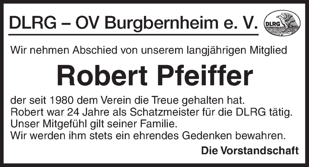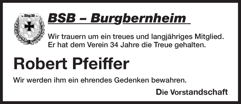 Hier finden Sie alle Traueranzeigen aus der Zeitung, die bisher für Robert Pfeiffer erschienen sind. Weitere Traueranzeigen, die in der Zeitung erscheinen, werden hier ebenfalls aufgelistet