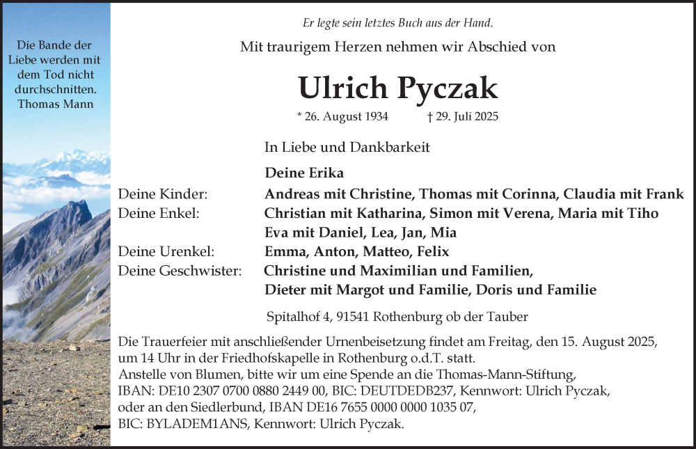 Hier finden Sie alle Traueranzeigen aus der Zeitung, die bisher für Ulrich Pyczak erschienen sind. Weitere Traueranzeigen, die in der Zeitung erscheinen, werden hier ebenfalls aufgelistet