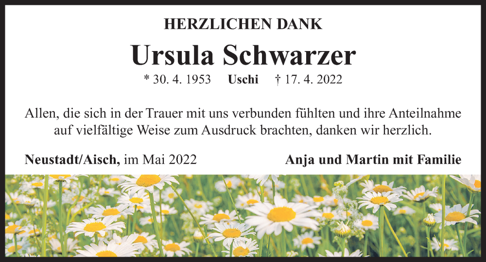 Hier finden Sie alle Traueranzeigen aus der Zeitung, die bisher für Ursula Schwarzer erschienen sind. Weitere Traueranzeigen, die in der Zeitung erscheinen, werden hier ebenfalls aufgelistet