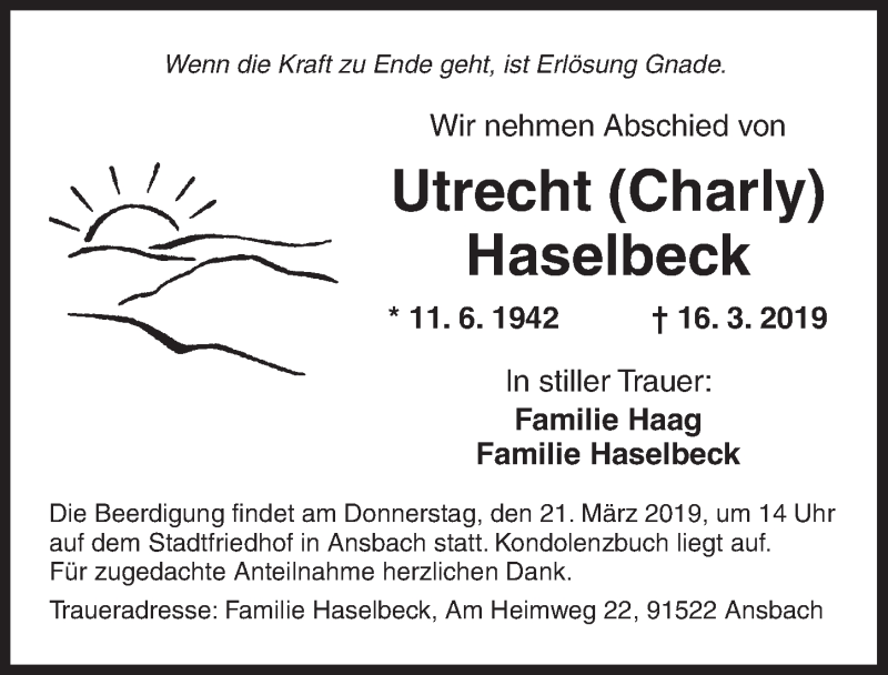 Hier finden Sie alle Traueranzeigen aus der Zeitung, die bisher für Utrecht Haselbeck erschienen sind. Weitere Traueranzeigen, die in der Zeitung erscheinen, werden hier ebenfalls aufgelistet