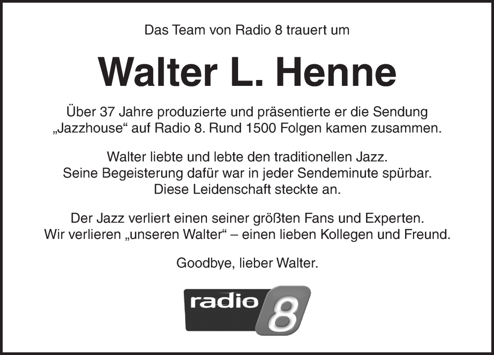 Hier finden Sie alle Traueranzeigen aus der Zeitung, die bisher für Walter L. Henne erschienen sind. Weitere Traueranzeigen, die in der Zeitung erscheinen, werden hier ebenfalls aufgelistet