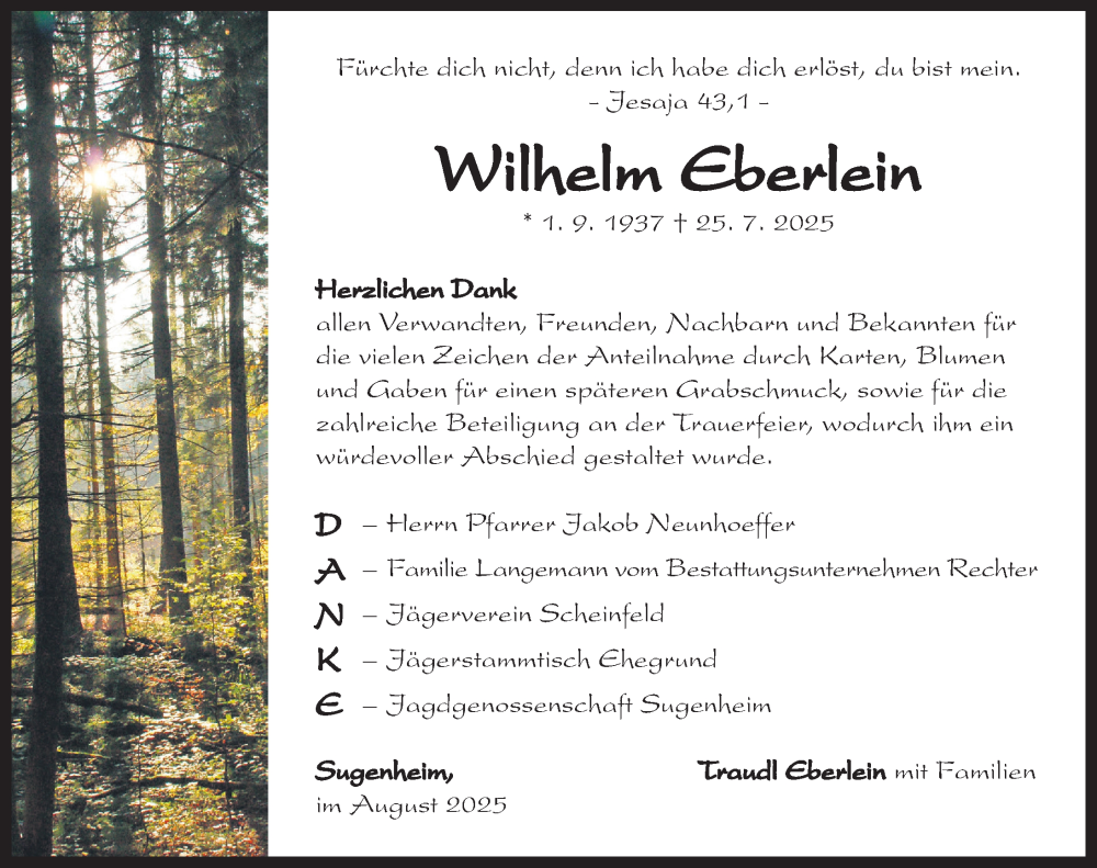 Hier finden Sie alle Traueranzeigen aus der Zeitung, die bisher für Wilhelm Eberlein erschienen sind. Weitere Traueranzeigen, die in der Zeitung erscheinen, werden hier ebenfalls aufgelistet