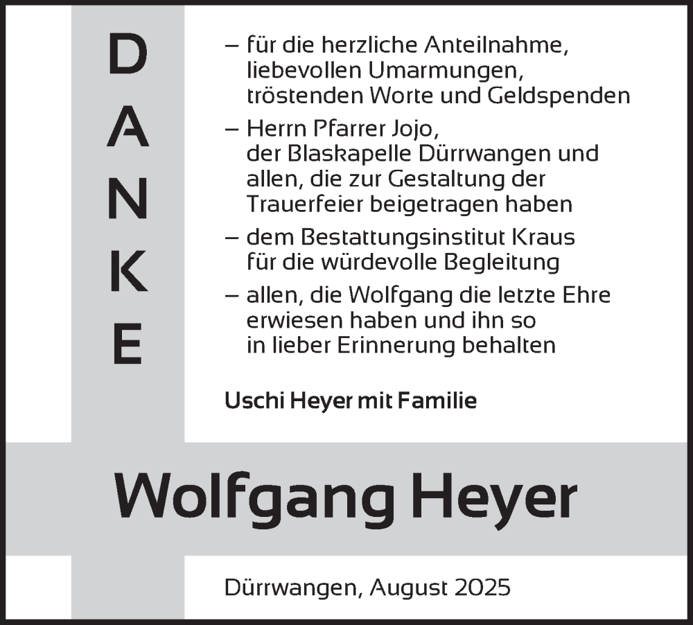 Hier finden Sie alle Traueranzeigen aus der Zeitung, die bisher für Wolfgang Heyer erschienen sind. Weitere Traueranzeigen, die in der Zeitung erscheinen, werden hier ebenfalls aufgelistet